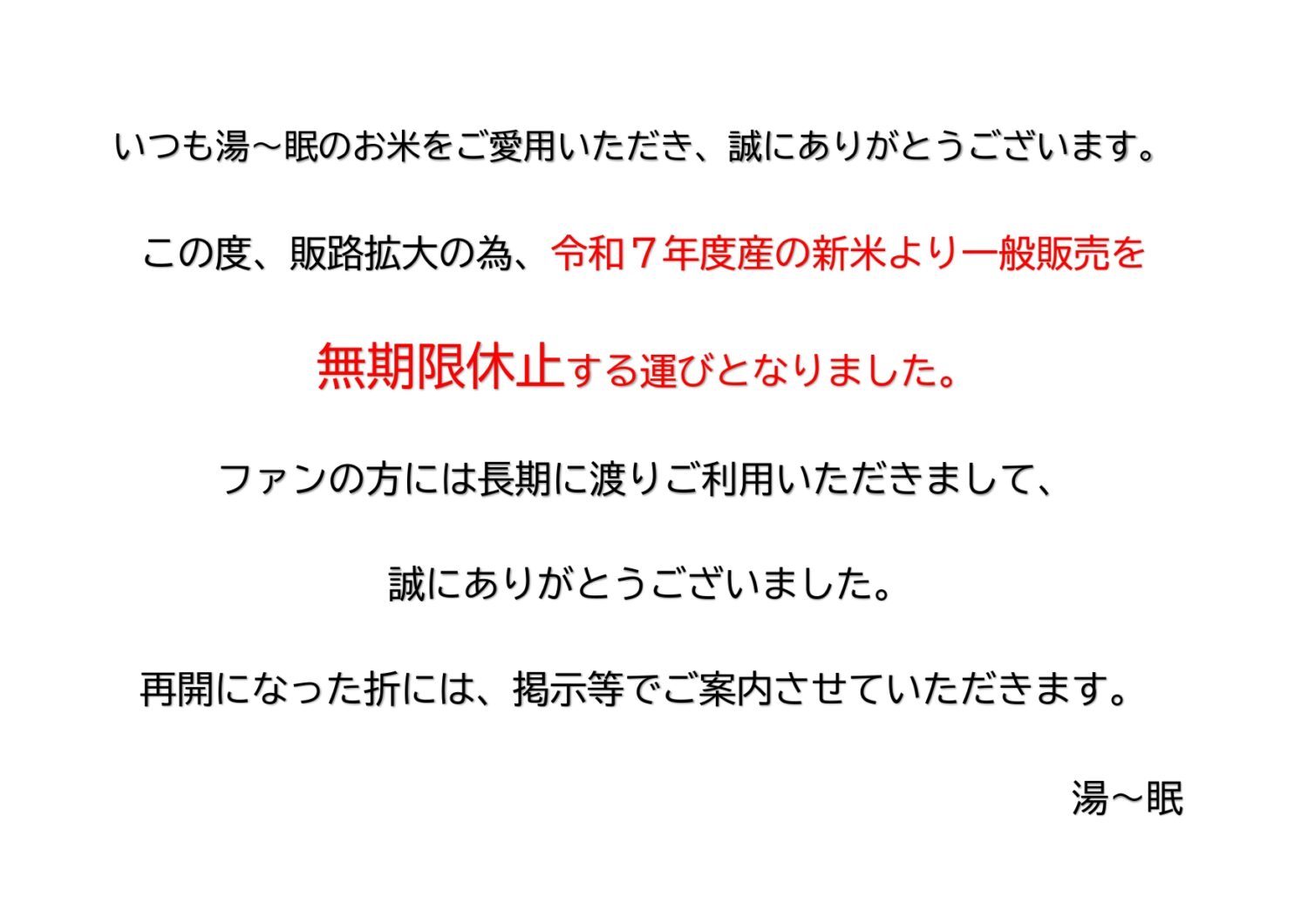 令和7年度産 湯~眠のお米 販売休止のお知らせ