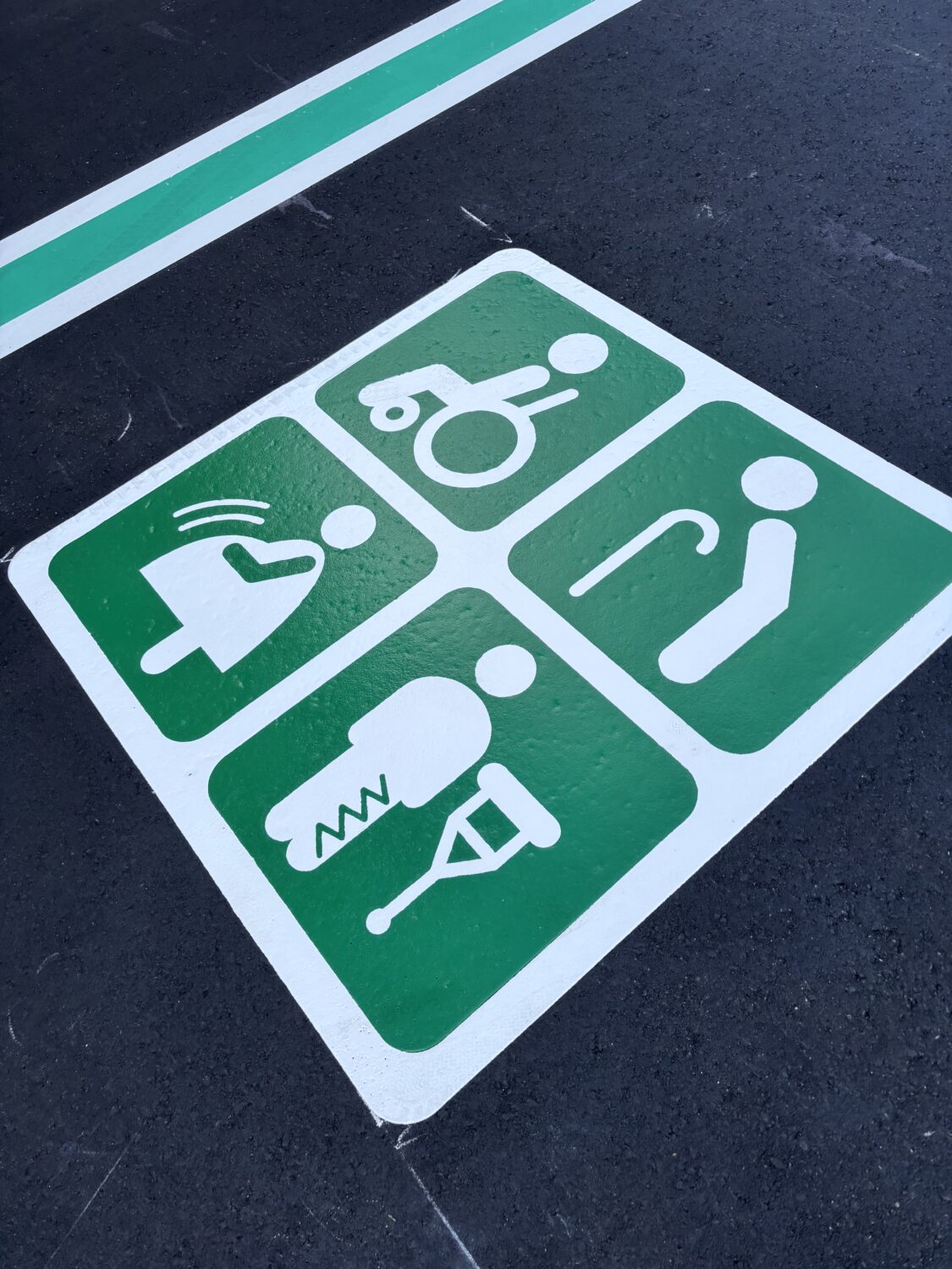 この度、湯~眠駐車場の一部を思いやり駐車スペースへ改修いたしました。